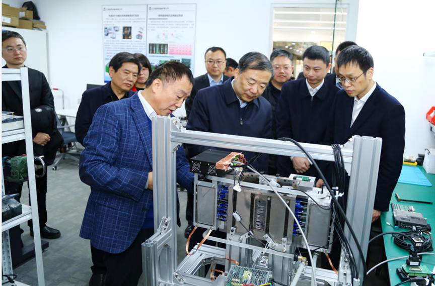 2月27日,无锡市委常委、江阴市委书记许峰、江阴市委常委、江阴临港经济开发区党工委副书记、管委会副主任张韶峰及江阴市商务局、发改委、临港开发区科技局、综保区管理局、招商局、江阴市产业发展中心等领导一行莅临江苏高同装备有限公司座谈交流。高同装备总经理郑建庭、首席科学家叶佩青等领导接待来访领导并做专题汇报。江苏高同装备有限公司首席科学家叶佩青向许峰书记详细介绍高同装备发展情况及未来规划,陪同许书记一行参观公司研发中心,介绍了解各功能板块项目及相关产品展示。